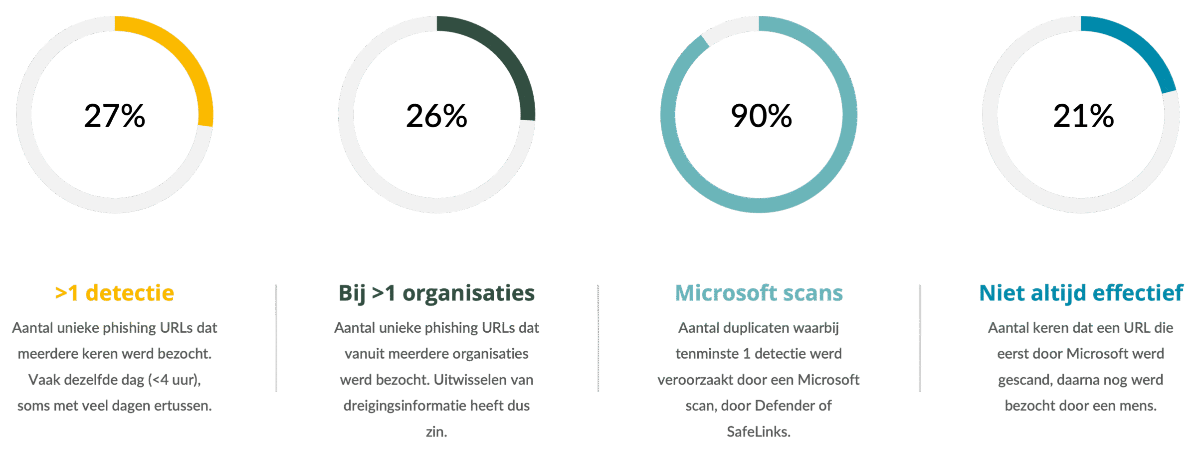 Microsoft scant veel (bij 90% van die hergebruikte URL’s), maar in 21% volgde na een scan tóch nog een menselijke klik – die scanfuncties bieden dus niet direct bescherming.