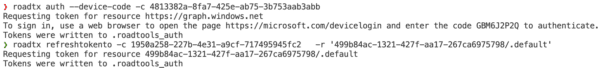 roadtx auth --device-code -c 4813382a-8fa7-425e-ab75-3b753aab3abb