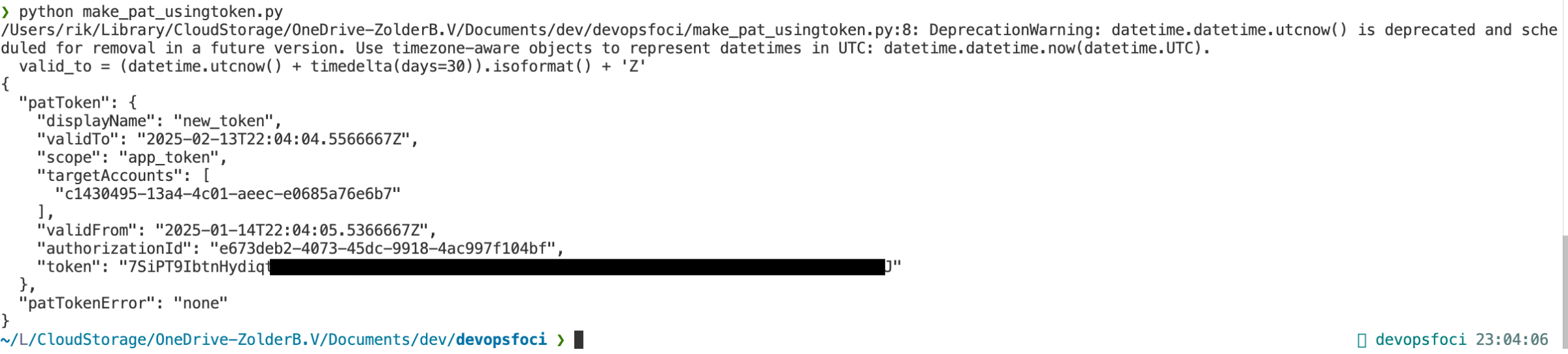 Bonus: creating a PAT token using the accesstoken we’ve just acquired.