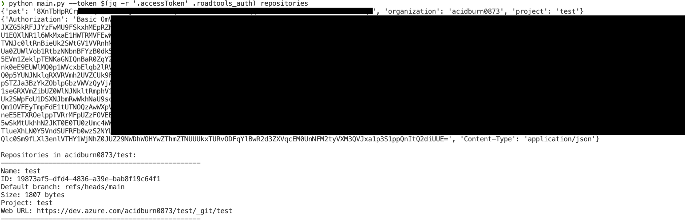 python main.py --token $(jq -r '.accessToken' .roadtools_auth) repositories
