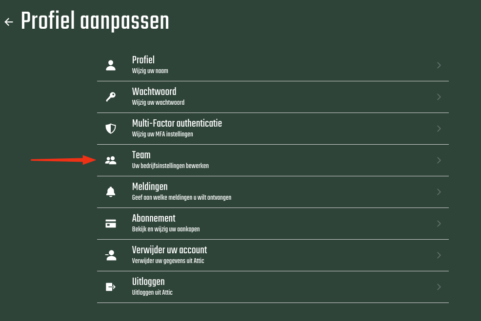 - Selecteer Team