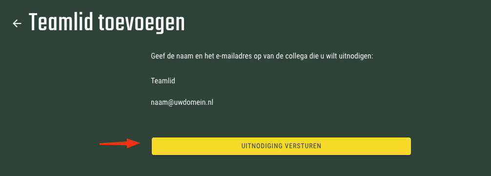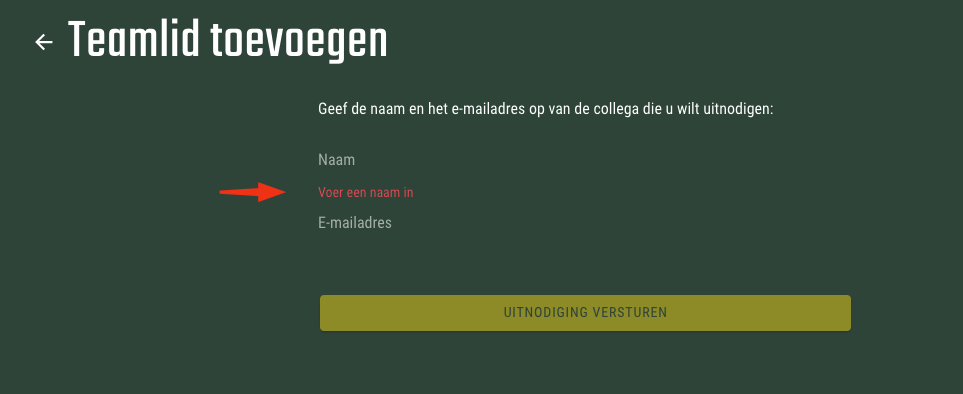 - Vul de naam en het e-mailadres van het nieuwe teamlid in