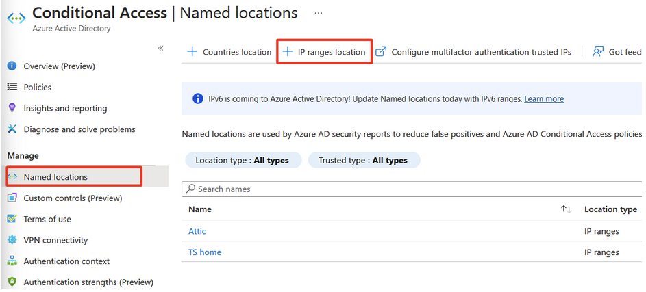 https://portal.azure.com/#blade/Microsoft_AAD_IAM/ConditionalAccessBlade/NamedLocations